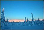 On Monday and Tuesday there was brisk frost about 20- 26 degrees. I skied on Sammalvaara Mountain and admired in the cover of the snow being trees. It was really fine weather for skiing. The landscape was like crystal. Not surprising, how a couple from Munich was week earlier written of the praise to the visitors' book of Mustavaara's hut. "Bin begaistert "" I am so excited "were final decision. They showed to have captivated mostly for long to continue mornings and evenings.